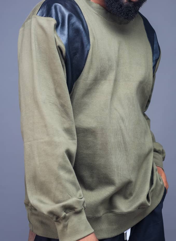sweatshirt with a mix of leather